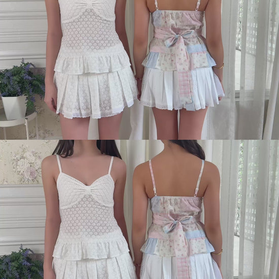 Tie-back ribbon to cinch the waist and adjust the fit